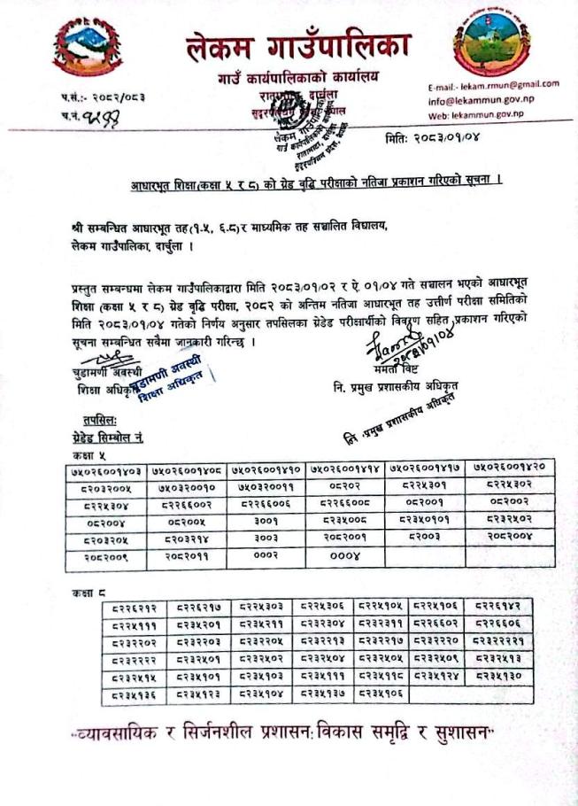 आधारभूत शिक्षा (कक्षा ५ र ८) को ग्रेड बृद्धि परीक्षाको नतिजा प्रकाशन गरिएको सूचना !